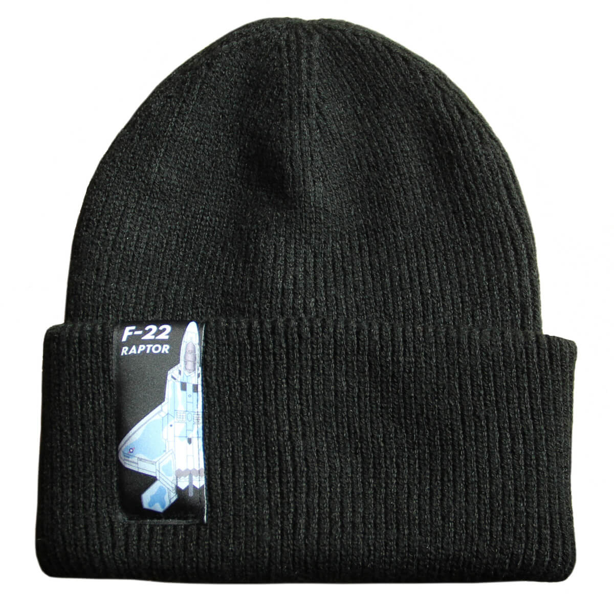Ciepła czarna czapka zimowa Lockheed Martin F-22 Raptor