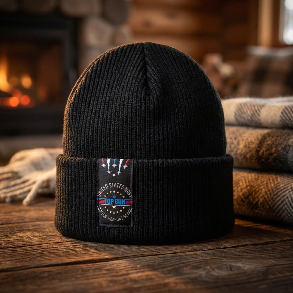 Ciepła czarna czapka zimowa Top Gun