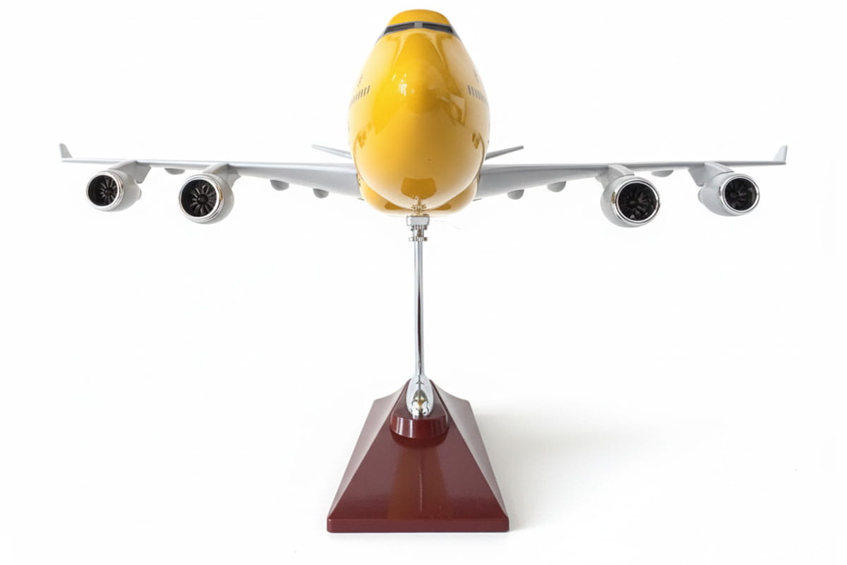 Model przedstawia samolot w skali kolekcjonerskiej, wykonany z wysokiej jakości żywicy, która zapewnia solidność, precyzję oraz długowieczność produktu.